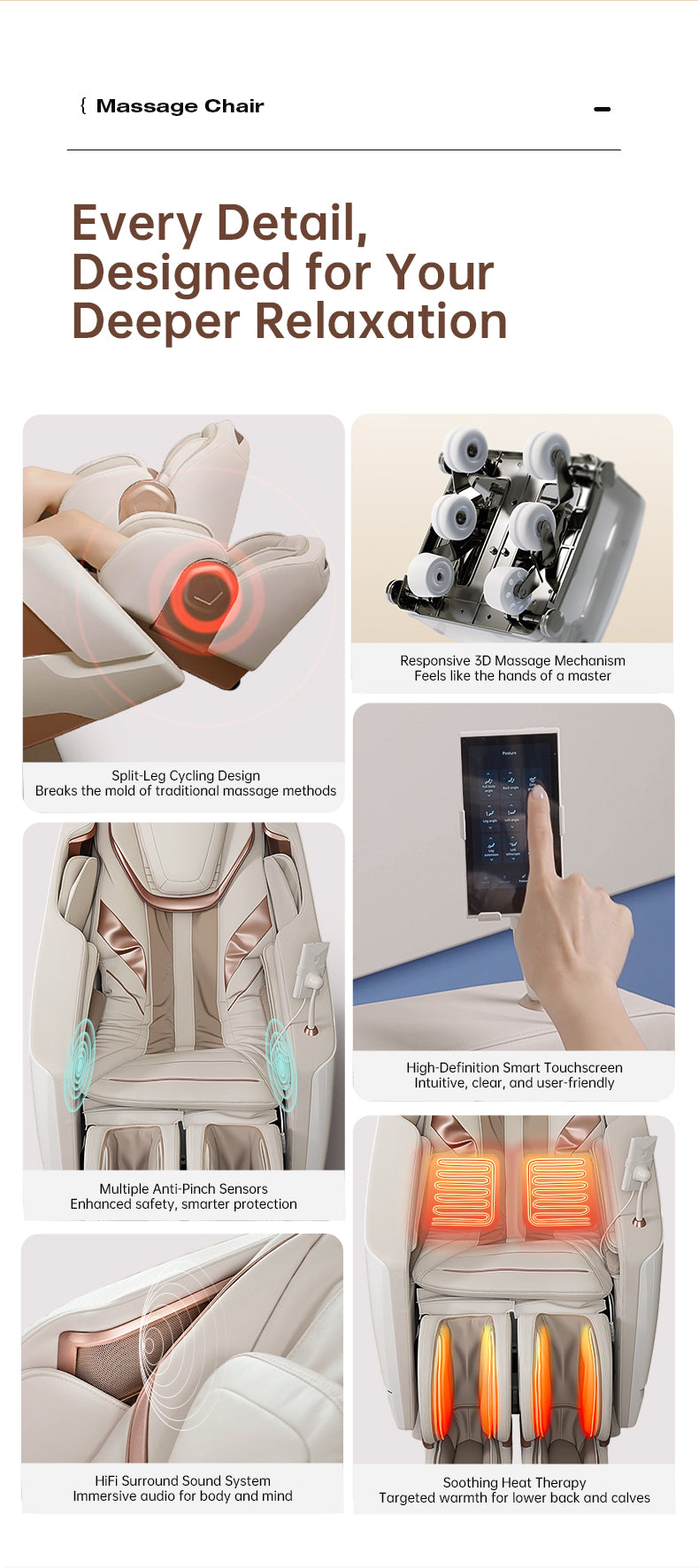 3. New conceptual massage that allows massage rollers to transit up/down/front/back.